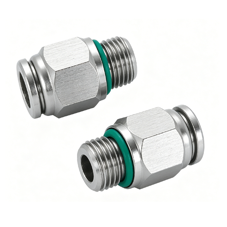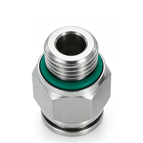 Constructed from stainless steel and featuring an internal fluororubber sealing ring, this pneumatic fitting offers exceptional environmental adaptability, ensuring stable performance even under complex operating conditions. It combines resistance to high temperatures, corrosion, acids, alkalis, and abrasion, making it suitable for a wider range of applications and ensuring a longer service life.